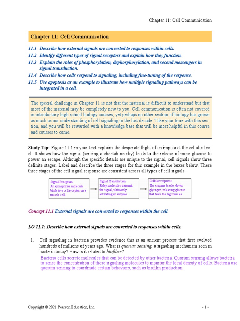 16+ Chapter 11 Cell Communication Reading Guide Answers